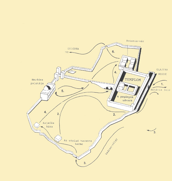 Kajafás házából az Antónia-várba Pilátushoz (
